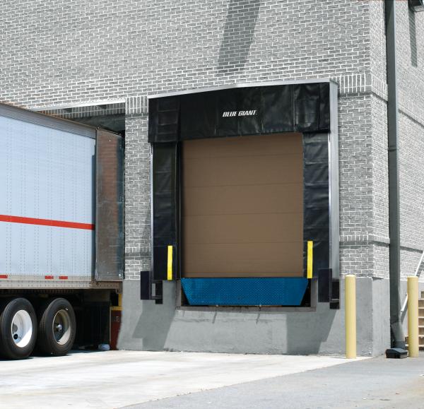 Designed to suit door openings up to 10' W x 10' H (3,048 mm x 3,048 mm), the Blue Giant Stationary Shelter uses flexible fabric curtains to enclose a trailer’s top and sides while providing full access to the interior.