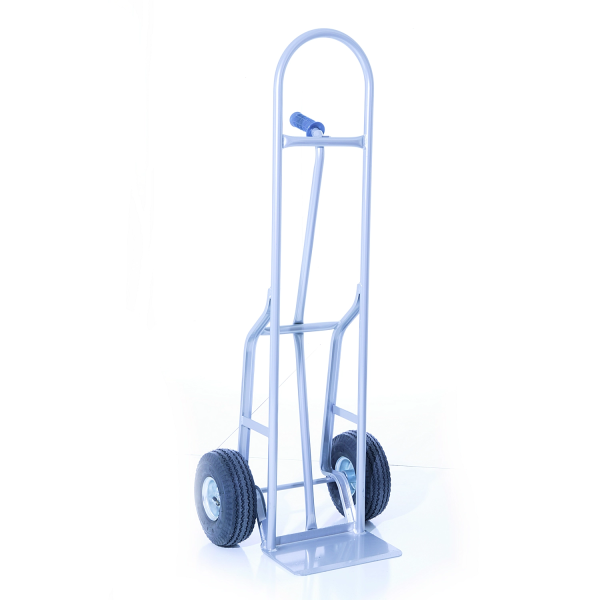 Steel Delivery Hand Truck 510PNP is the same tall hand truck as the 510PSP model, just with large pneumatic tires. The pneumatic tires are best suited for heavy loads of soft surfaces such as dirt or gravel.