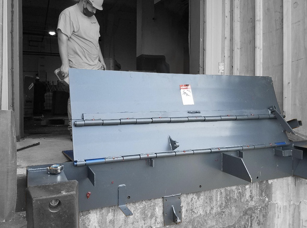 Designed with a working range of 5″ above or below dock height, Bluff’s Edge of Dock leveler (Model EP) accommodates most loading applications without a problem. The EP is positioned by lifting and pulling the handle to the dock floor, and then the latch assembly activates the lip, projecting it forward onto the bed of the trailer as the handle is lifted. When released, the handle automatically returns to its stored position. Welding to an existing steel channel or a Bluff approach plate is required. Available in capacities from 20,000 to 30,000 lbs and bumpers are included.